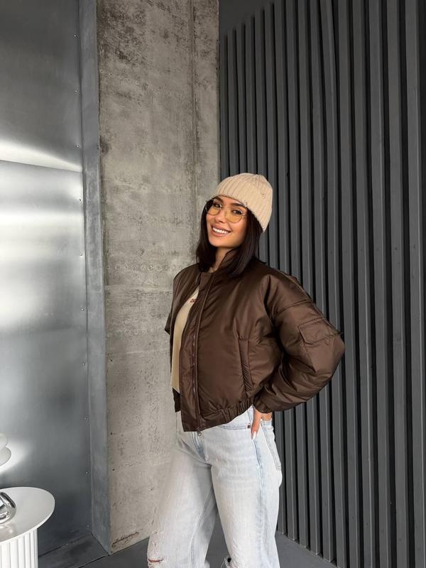 Юл 5.03.6 Тот самий БОМБЕР , який ✨підкреслює образ ✨легко поєднується з джинсами, сукнями та спорт-шиком ✨виглядає стильно й дорого ✔️Ідеальний для весни ✔️Комфортний, легкий, трендовий ✔️якість 🔥 ◽️мод :2/Мр/И05/79-205 ◽️розміри :Універсал ( 42-46) ◽️тканина : плащівка + 150 силікон + підкладка . ◽️колір : т. Коричневий , чорний ✔️ЗАМІРИ ПО ВИРОБУ ПОГ - 60 Довжина - 55 Рукав від горловини - 75 Пояс на резинці ( 90 см ) ✔️ бомбер відшитий дуже якісно , рукава, плечі ,горловина та блискавка мають подвійний шов . ✔️блискавка у колір тканини ✔️робочі кишені спереду та на рукаві . #наложка
