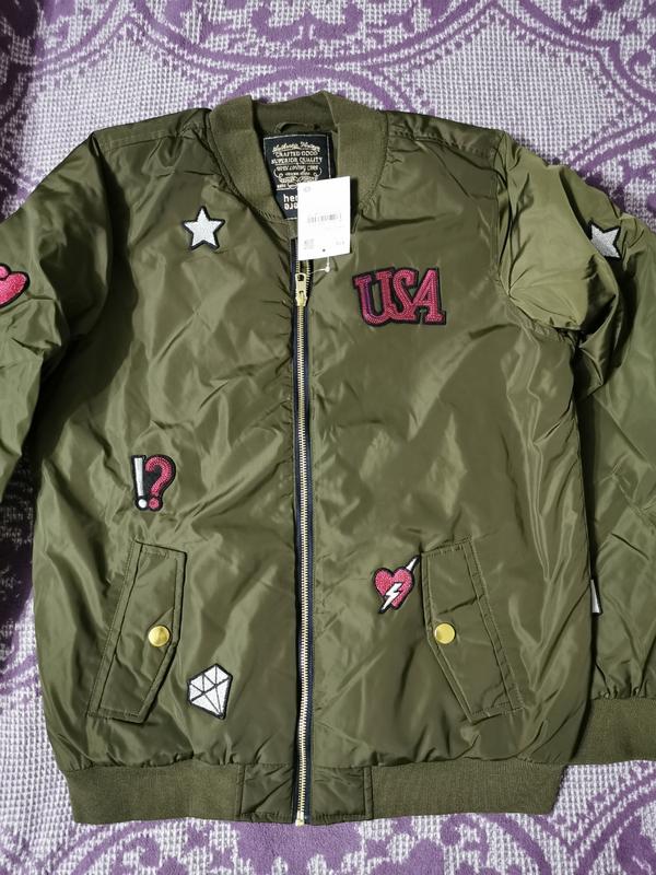 бомбер C&A 176 рост примерно на размер М Длинна 65 см Ширина в груди 52 см Рукав 63,5 см По внутренней стороне рукав 51 см
