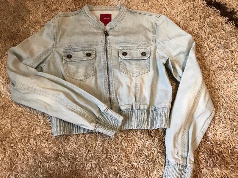 Нова джинсовка, на фото видно бірку Розмір s Плечі -41 см Довжина - 45 см Довжина рукава - 64 см