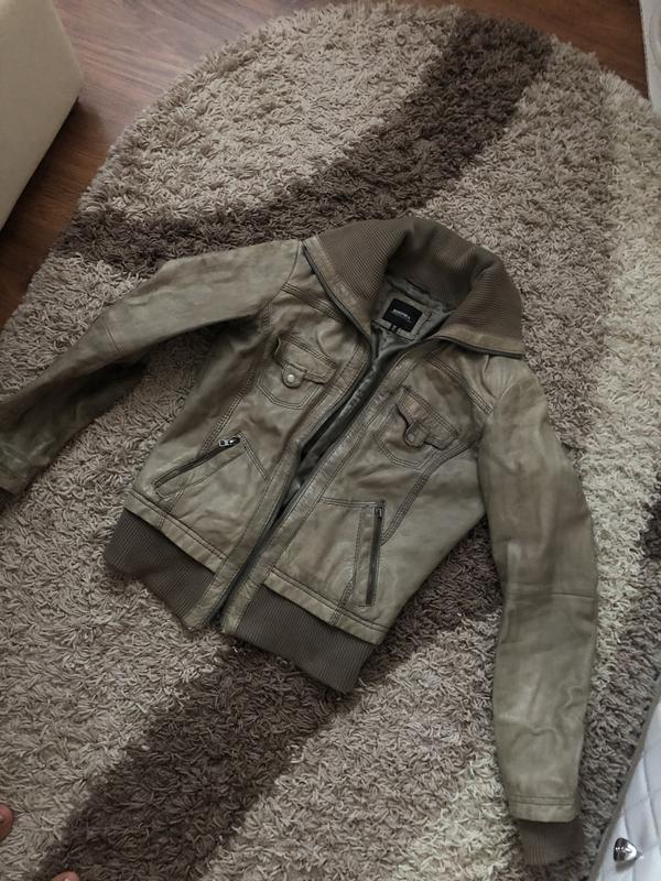 Эффектная кожаная куртка-анорак с эффектом дистрессинга от bershka , розмер М 🤩🤩