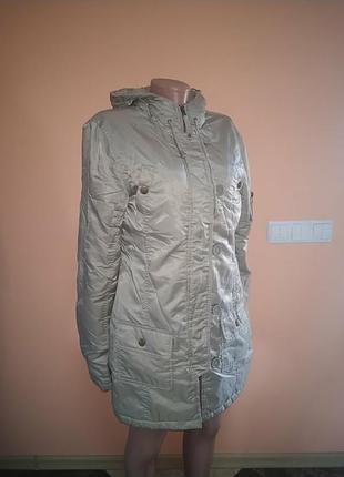 відмінна курточка, стан нового. п'ять невеликих зовнішніх кишені, капюшон не знімається. плечі - 43см рукав - 69+2см манжета довжина - 79 см пог - 50см піт - 48см побіди - 54,5 см