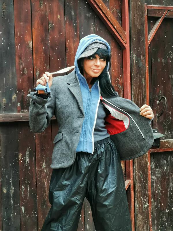 Очень крутая вещь! Трикотажная вставка с капюшоном и манжетики отстегивается Плечи 46 ПОГ 49 ПОТ 46 Длина 63 Рукав 65 - 67 #31