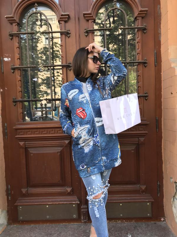 Распродажа вещей шоурума! Красивенный удлиненный бомбер с яркими рисунками Натуральный состав ткани - хлопок, лайкра - не вызывает аллергии и дышит Качественная итальянская фурнитура С джинсами на прогулку в город, и на природу с друзьями самое то. С яркими шапкой и шарфом будет смотреться классно. Длина - 83 см На все дополнительные вопросы отвечу молниеносно}