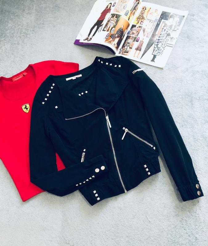 Стильная легкая куртка косуха Tally Weijl Очень хорошее состояние Размер L, можно и на М Ткань бархатистая, приятная на ощупь👌 Застегивается на металическую молнию Внизу и на рукавах резиночка По бокам кармашки, на груди маленький кармашек. На рукавах и на плечах заклепки Без подкладочки Смотрите замеры👇 Длина от плеча - 56 см Ширина внизу по резинке - 41 см ПОГ - 47 см Длина рукава - 65 см Длина замка - 51 см Актуальная и качественная🌸 Спрашивайте 🌸 отвечу с удовольствием🌸 Отправлю Укр или Новой почтой