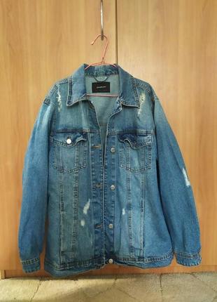 Джинсова куртка подовжена з потертостями Stradivarius. Розмір: L