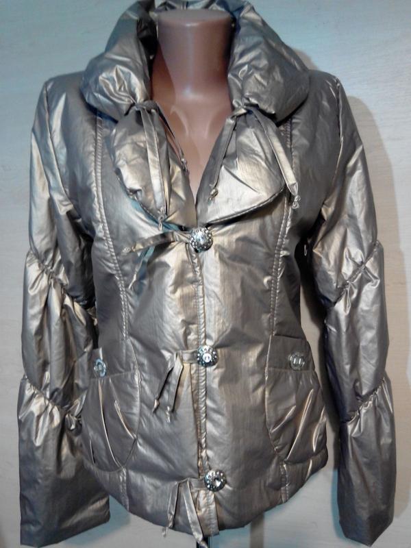 Куртка золотистого цвета на синтепоне .Ткань водоотталкивающая и непродуваемая.Пог 45 см,Пот 44 см,По низа 47 см ,длина плеча 11 см,длина рукава от плеча 66 см,длина куртки 60 см.