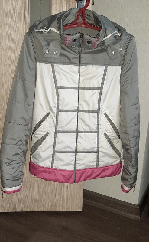 Курточка на тёплую осень. Рукава и капюшон отстегиваются. Длина 62, рукав 66, по груди 44.