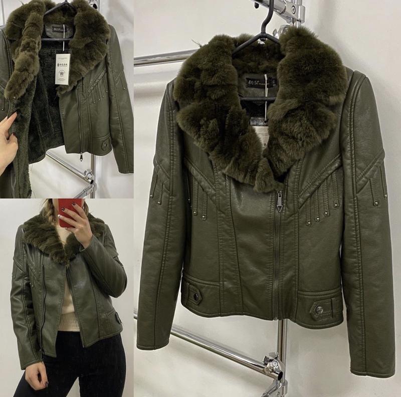 Утеплена курточка з еко замші . Комір з натурального хутра! Розміри s-xl