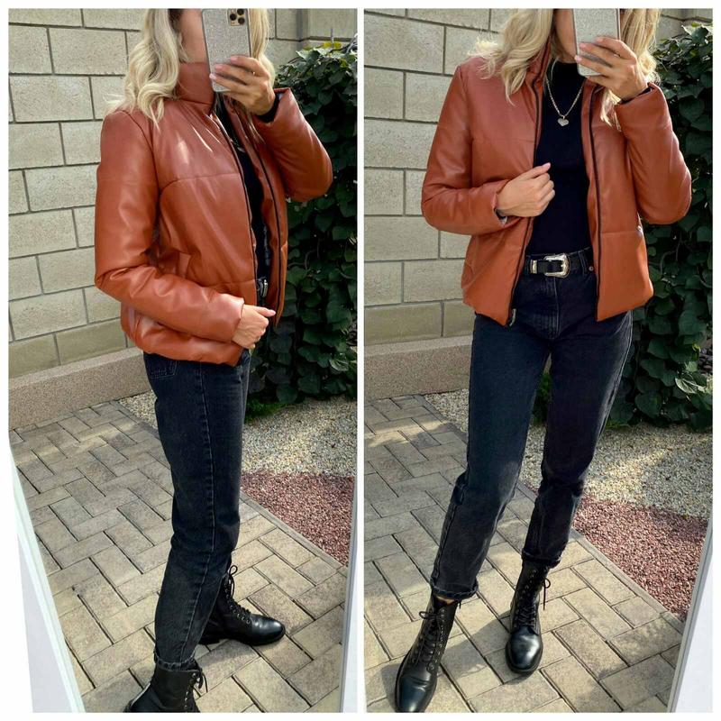 Куртка Сеоп Модель 805 Розміри 42-44 46-48 Модель 1805 Розміри 50-52 54-56 Ціна 650грн Тканина еко-шкіра високої якості і хорошу щільність, силікон 250,м'який, пухнастий і тепла Куртка з підкладкою, застібається на блискавку-трактор, робочі зручні кишеньки Манжети і низ куртки на резинці, забезпечують більш щільне прилягання силуету, захищаючи Вас від вітру) Стильна і практична, зручна і красива куртка з еко-шкіри - це must-have у вашому гардеробі Кольору хакі, чорний і теракот