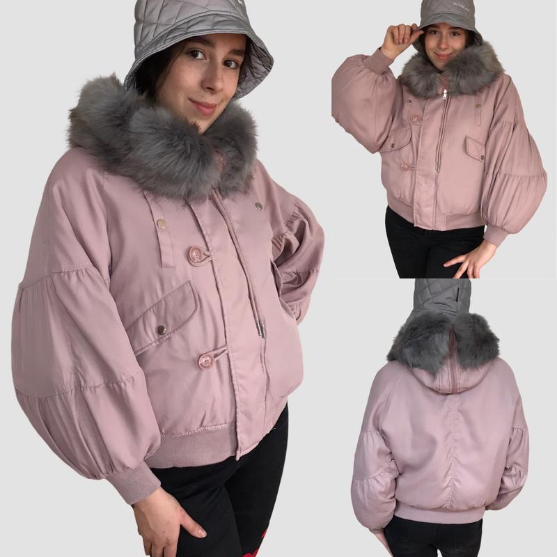 Нові дуже класні курточки з об'ємними рукавами, колір: пудра, хакі, чорний В розмірах: М, L, XI Довжина 57см, по грудях вільна, рукав від коміра 70см