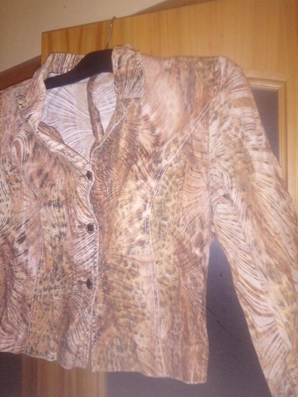 Короткая куртка из натурального джинса интересной расцветки.