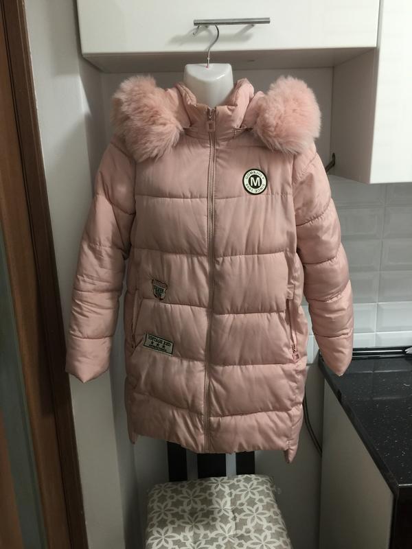 Куртка оversithe зимова подовжена, наповнювач холофайбер колір пудра.Стан ідеальний Буде на розмір S,M,L