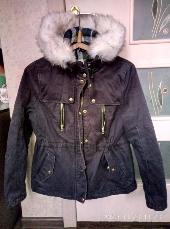 Куртка в очень хорошем состоянии.Тепленькая,может не на сильный минус,но в маленький минус подойдет.Подкладка стеганая.Размер 12,примерно 44-48.Универсальный размер,внутри есть веревочки,они затягивают любую талию.Свет как будто потертая или немного выстираная и не черная,но и не серая,что то среднее.Капюшон не отстегивается,но отстегивается мех.Замеры Длина от плеча-63 см Длина рукава от плеча-64 см Полуобхват подмышками-53 см