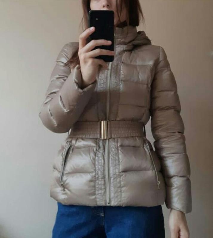 Фото зецепка на рукаве тонкая незаметная и фото 8 две тонкие зацепки внутри на подкладке тоже незаметны вовсе. В остальном вещь без износа. Наполнитель пушистый и равномерно распределен без пустых мест. Куртка плотная на холодную погоду. По цвету куртка чуть с золотистым отливом. Плечи 37 см. Рукав 61 см. Длина 64 см. Ширина в груди 48 см. Область талии 43 см. Низ 50 см. Капюшон на молнии и на него есть мех прилагается к куртке.