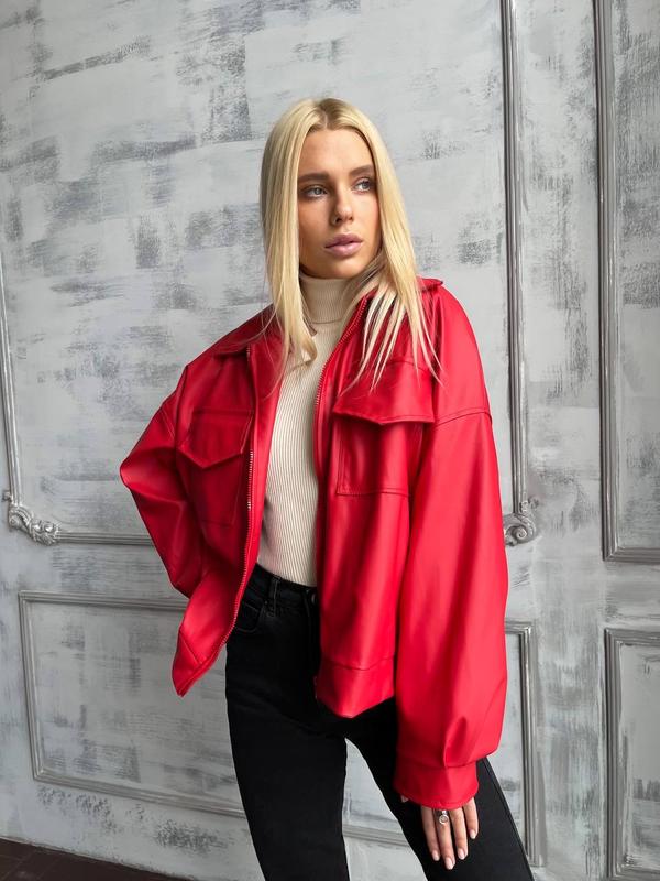 Стильная Кожаная куртка oversize 💕 Идеальная посадка и крой 😍 🔝высококачественная эко- кожа!🔝Качество люкс 🔝Размер: oversize 42-48 🔝В наличии цвет TOTAL BLACK 🖤, красный 🔝Цена: 640 грн.