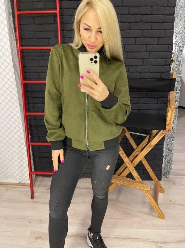 Бомбер арт. ls. Ткань: замш на дайвинге Размер: 42-44, 46-48 Цвет: хаки, графит