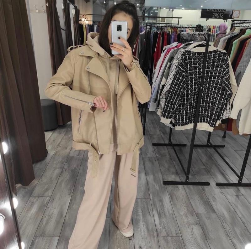 Косуха оверсайз Размеры: М=42-44, Л=44-46 Ткань: эко-кожа Цвет: бежевый, чёрный Фабричный Китай