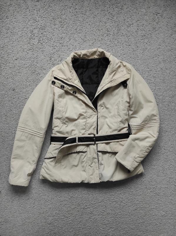 Колір бежевий (світло пісочний ) Розмір не вказаний, орієнтуйтеся по замірах: Довжина куртки - 65 см Ширина плечей - 44 см Напівобхват грудей - 57 см Напівобхват талії - 50 см Напівобхват знизу - 60 см Довжина рукава - 65 см Є декілька зацепів на лівому рукаві (див. ост. фото)