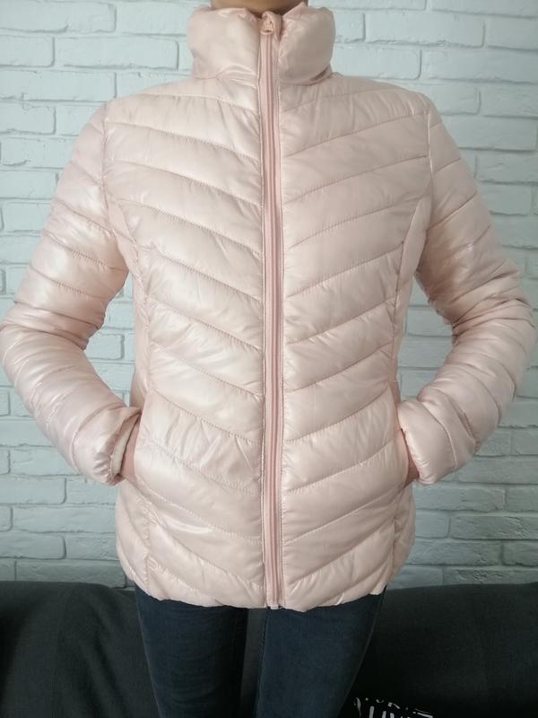 Фирменная демисезонная куртка zebra Длина: 60см. ПОГ: 48см. Длина рукава: 62см. Длина рукава по внутреннему шву: 48см. Длина плеча, от ворота: 11см. Высота ворота: 8см. Есть два боковых кармана Очень лёгкая просто невесомая Цвет розовый с перламутровым отливом