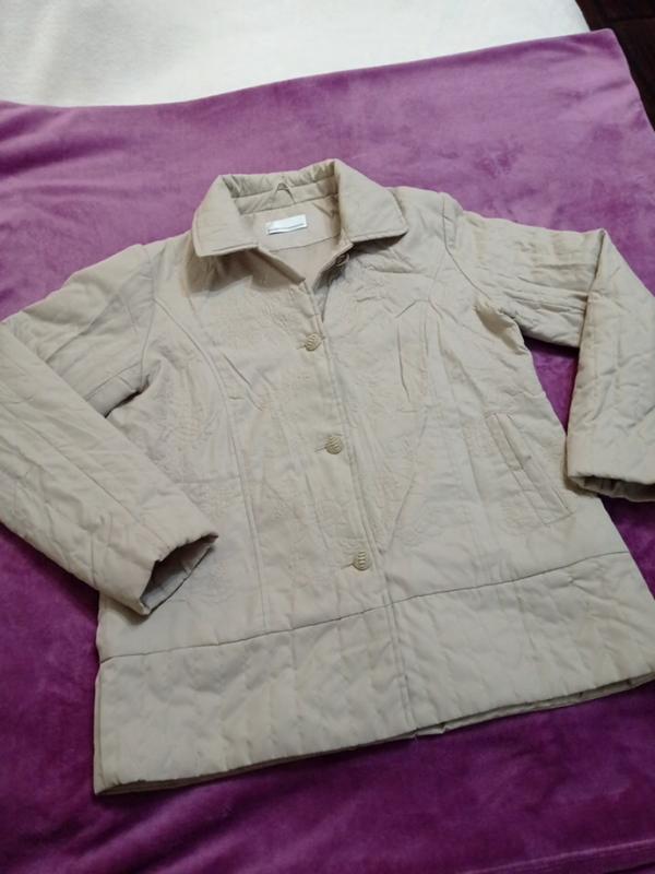 легкая куртка на подкладке. нежный бежевый цвет. вышивка нитью в тон.два кармана длина 69 см, ПОГ 53 см, длина рукава 61 см