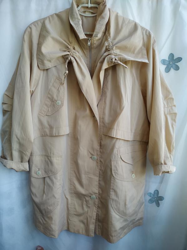 ИНТЕРЕСНАЯ КУРТКА, ПЛАЩ НЕЖНОГО РОЗОВО БЕЖЕВОГО ЦВЕТА ПОГ 66 ПОБ. 69 ДЛ. 88 РУКАВ ОТ ГОРЛОВИНЫ 76