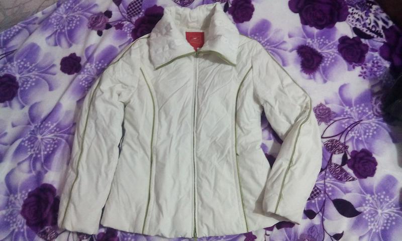 Классная куртка молочного цвета с оливкового цвета швами и молнией. Имеется 2 наружных и 2 внутренних кармана. Оригинальный ворот куртки,приталенная. Единственный минус- утерян пояс. Длинна рукава 62см ПОГ 50см ПОБ 55см. Дополнительные вопросы в личку.