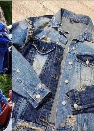 Джинсовка (фабричная рванка) М-Л, длина - 64см, пог в застегнутом виде - 52см Состояние идеал, одевалась пару раз так как оказалась мне большая. Отдаю за 750грн, стояла 1300