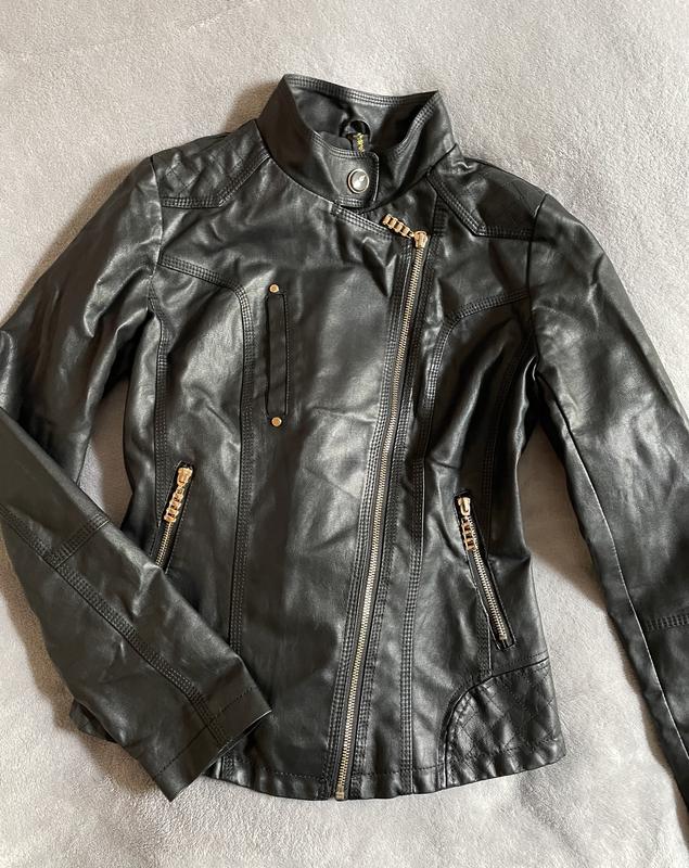 Куртка з штучної шкіри Загалом в дуже хорошому стані,але зверху на спині є невеликі потертості (на фото видно) Довжина-54,5 см Ширина по плечах-37 см Довжина рукава-61 см