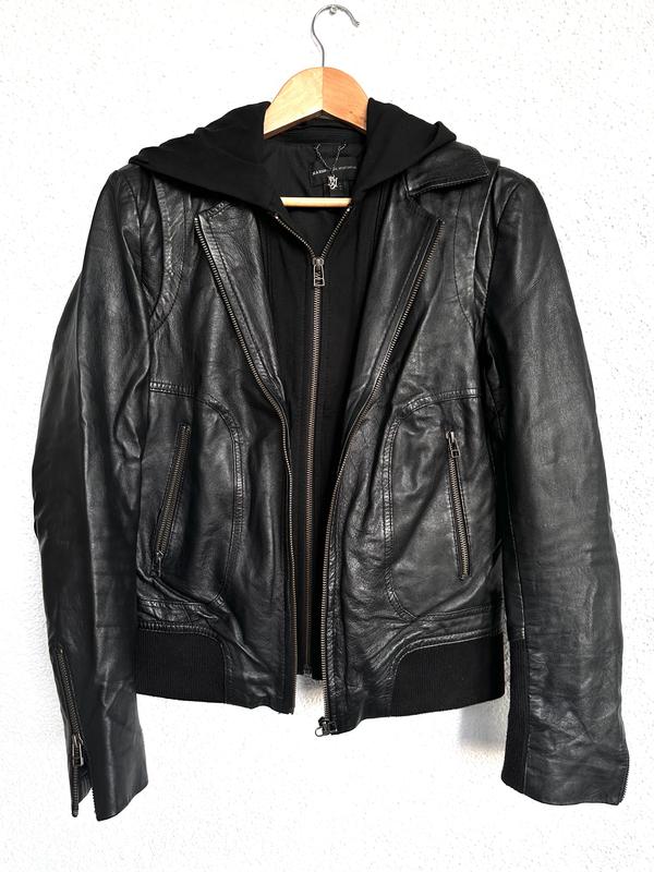 Кожанка Mango з 100% натуральної овечої шкіри Розмір М Капюшон зйомний, що дозволяє змінювати стиль куртки в залежності від потреб образу