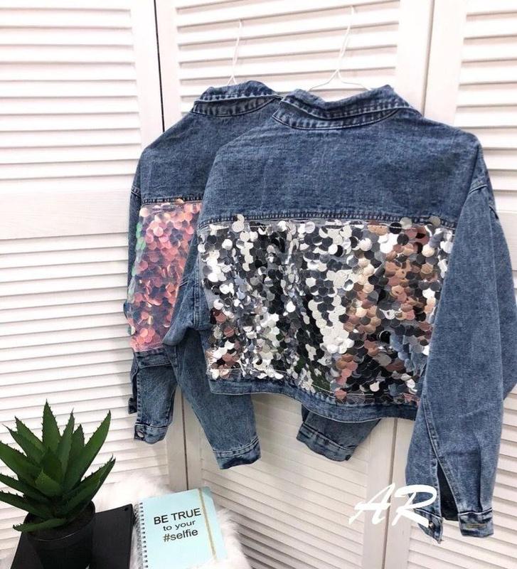 ❣️NEW SEASON 2021❣️ Укороченные куртки свободного кроя (Фабричный Китай) ткань джинс спинка крупные паетки хамелеон размер универсальный 42/46 длина 48 см рукав 50 см цвет розовый и серебро