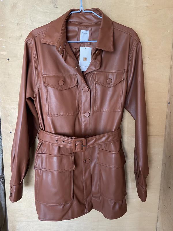 Екошкіра, колір глиняний. Довжина 75, рукав 62, обхват грудей, талії, стегон - 108