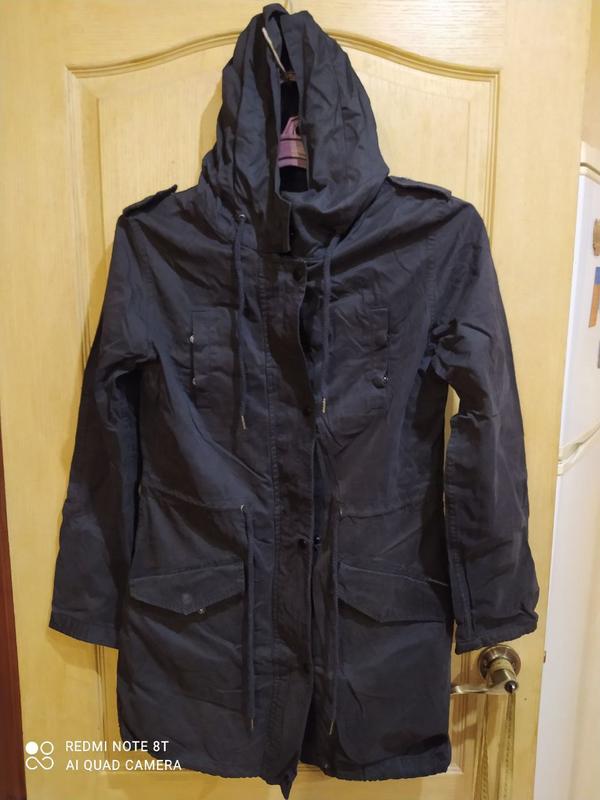 Фирменная ветровка парка с капюшоном. Цвет черный, есть карманы, застежка кнопки, подкладки нет, по талии можно стянуть кулиской, ткань плотная, влаго- ветро- непроницаемая. Размер евро 1. Замеры: плечи 40 см, ПОГ 40 см, ПОТ 46 см, ПОБ 54 см, рукав 62 см, длина 84 см. СМОТРИТЕ ДРУГИЕ МОИ ОБЪЯВЛЕНИЯ. МОЖЕТ БЫТЬ ИМЕННО ВАША ЛЮБИМАЯ ВЕЩЬ ПОКА ЛЕЖИТ В МОЕЙ "ШАФЕ"