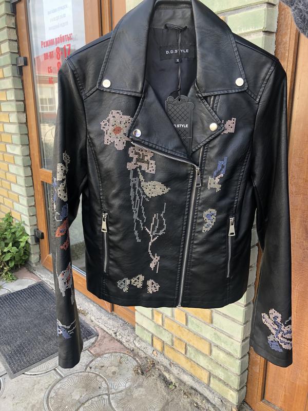 Косуха с еко кожи Материал плотный , молния железная , так же есть боковые карманчики! Новая , без либо какого дефекта! Длина рукава 66 Пог 52 Пот 48 Ширина плеч 43