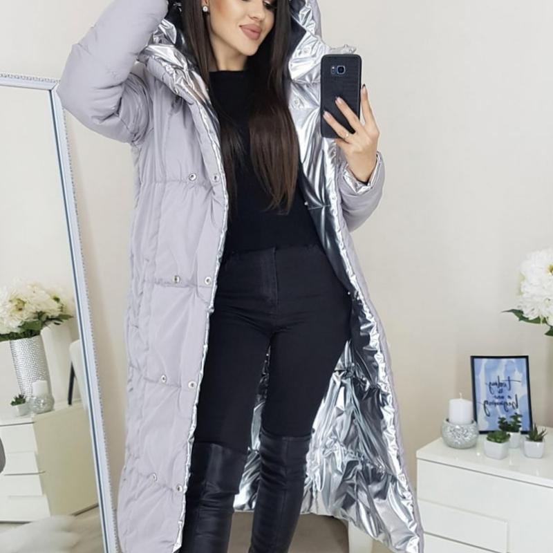 #Куртка Артикул: 711-727 Цвет: серый\серебро Размер: 42-44 (маркировка 2) Материал: плащевка + синтепон 250 Двухсторонняя зимняя куртка Фото Реал