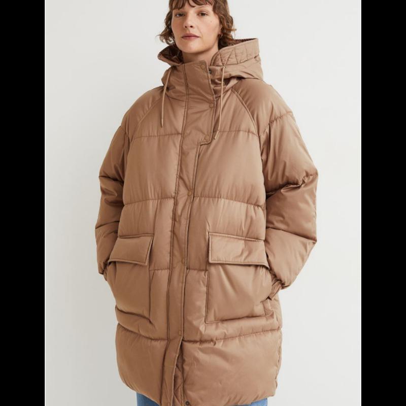 Куртка из мягкой ткани. Капюшон с кулиской, застежкой-молнией и штормовым клапаном с кнопками спереди. Карманы с кнопками спереди. Длинные рукава реглан с резинкой на подкладке по низу. На подкладке. Размер - Модель 180 см / 5'11 дюймов, размер M Модель - Свободный крой Состав снаружи: 100% полиэстер, подкладка: 100% полиэстер, набивка: 100% полиэстер
