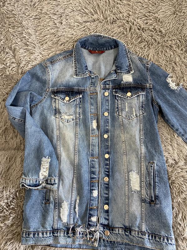 Джинсовая куртка, удлинённая , стильная с потёртостями и аксессуарами , покупалась в Израиле одевалась 1 раз