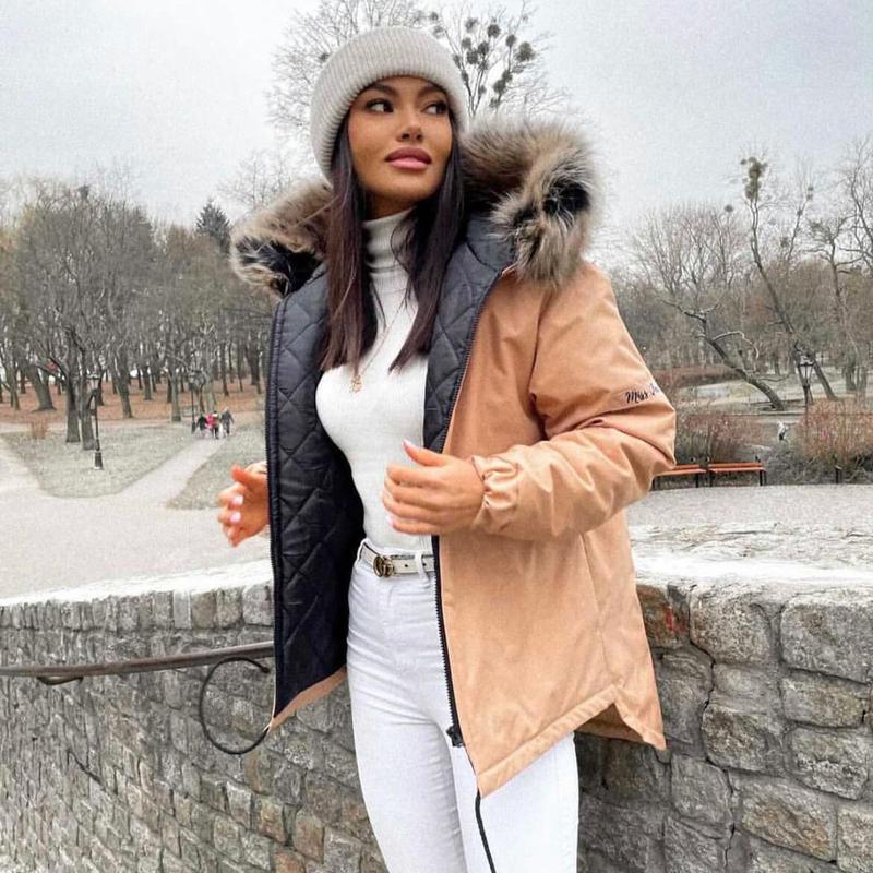 Курточки Хит продаж Ткань Плащевка Мемори Синтепон 200 подкладка Экомех Капюшон отстегивается Мех пришит См (42-44) и мл (46-48) Мокко пудра Чёрный камуфляж