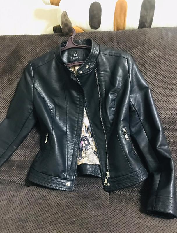 Женская классная куртка из эко кожи . Настоящий размер S-M, но на бирке L. Одета была 2 раза .