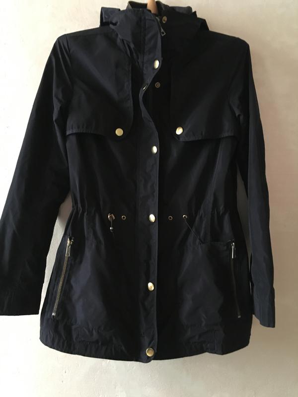 Куртка , ветровка темно синего цвета размер 10. Наш 38. New Look. Замеры грудь 45, рукав 62, плечи 38, длина по спине 70. Есть не значительный зацеп внизу на сантиметр ;( в цене учтено .