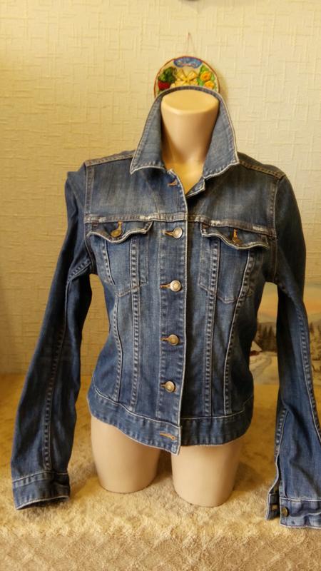 H&M Джинсовая куртка с потертостями на карманах. Размер указан на фото. Замеры ПОГ-47-47,5 ПО по низу-43, боковой шов-28, плечи-42, длина по спинке-50,рукав-64/46.