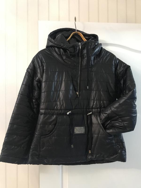 Куртка застёгивается только до половины.Одевается через голову.Не обычная модель,смотрится интересно.Тёплая,на синтепоне.Спереди карман,с капюшоном.Длина 62,Длина Рукава от горловины 65,ПОГ 49,Длина внизу 52.О руки вверху 19 Подойдёт на худенькую девочку размер XS или S