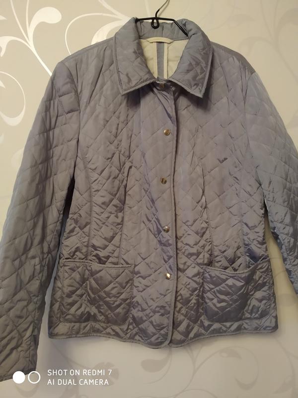 Лёгкая стёганая куртка в состоянии новой вещи, красивый серо-голубой цвет с металлическим отливом плечи-43 длина рукава-59 ПОГ-52 длина куртки-63