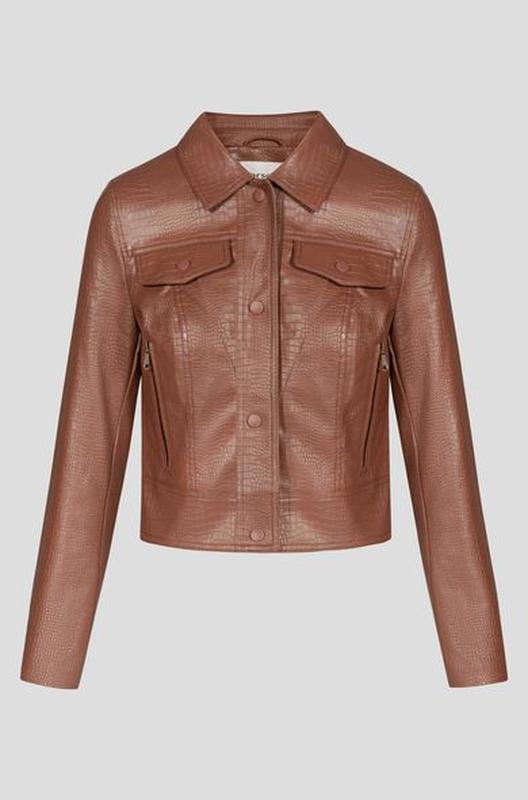 Лакированная куртка карамельного цвета под животный принт крокодила zara reserved