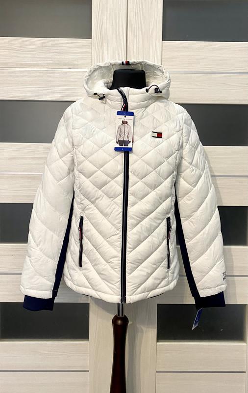 Курточка стеганая от Tommy Hilfiger, L размер. Курточка обработана контрастной молнией и манжетами. Манжеты можно носить как митенки с разрезами для большого пальца. Есть капюшон, без подкладки. Пог 54 Пит 52 Поб 59 Длина рукава 62 (67) Длина изделия 67 Ширина спинки 41