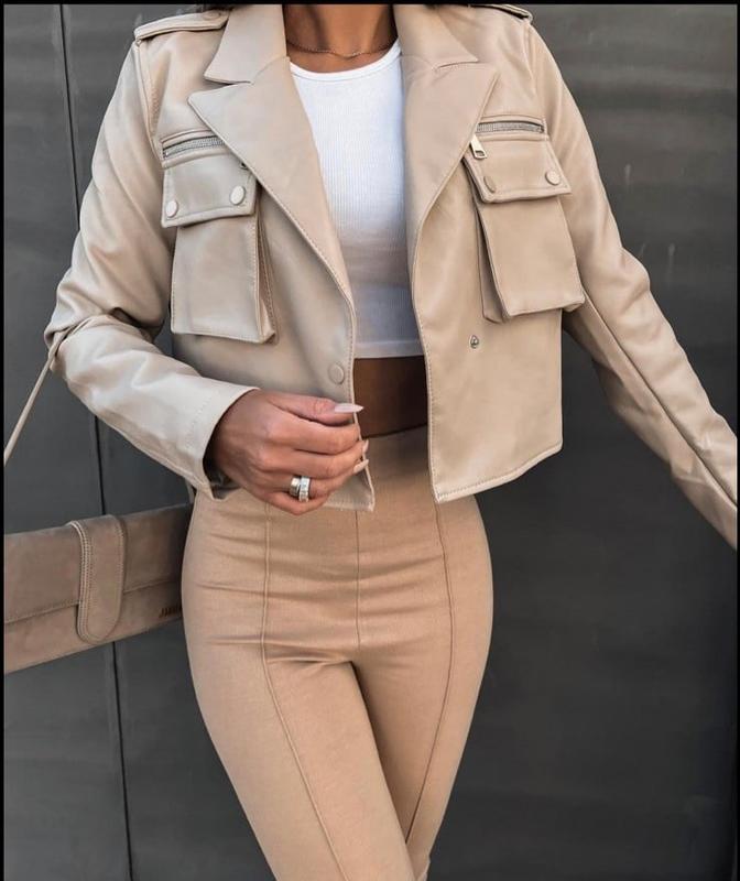 Куртка Очень стильно смотрится Размеры: 42-44, 46-48, 50-52 Ткань: эко кожа Цвет: беж и чёрный