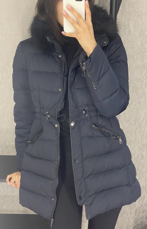 Пухова куртка Zara. Тепла та зручна. Резинки в талії регулюються. Всередині додатково штучне хутро. На комірі також хутро на кнопках (можна відстібати), також присутній потаємний капюшон.