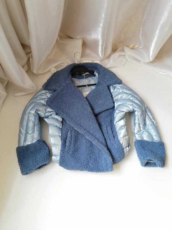 Куртка косуха оверсайз с мехом барашек тедди каракуль , вставки перламутровой стёганой пл...