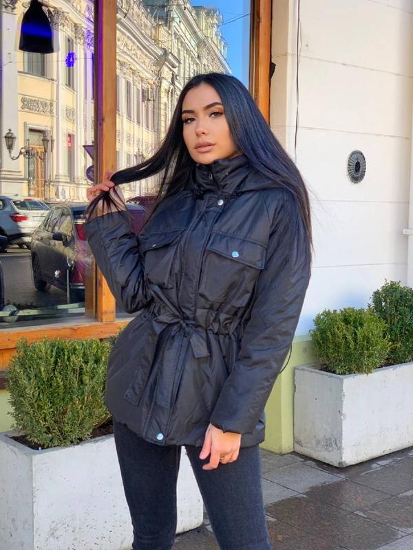 Куртка Розміри 42/44, 46/48 Тканина плащівка канада Кольори: соковито зелений, небесно блакитний, малина, чорний. Синтепон 100 Куртка на змійці, додатково застібається заклепками Капюшон відстібається