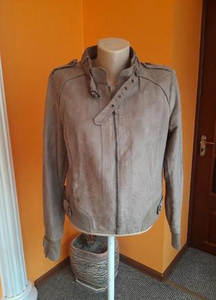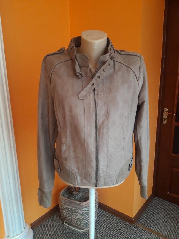 гарна укорочена курточка бомбер бежевого кольору,написано розмір л,але краще на м плечі 38, Пог 48, Пот 43,довжина 51, рукава 59