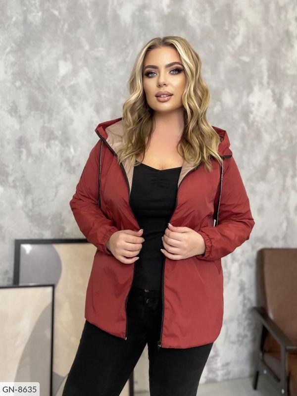 Куртка GN-8634 модель : 4193 Размеры: 48-50, 52-54, 56-58 Застежка: молния Длина по спинке: 74 см Рукав: 64 см Материал: плащевая ткань, Цвета: марсала, черный, мокко Спортивная удобная ветровка с капюшоном, двумя карманами и манжетами на рукавах Замеры по изделию: 1 р/р - ог 114 об 118 2 р/р - ог 120 об 124 3 р/р - ог 126 об 130